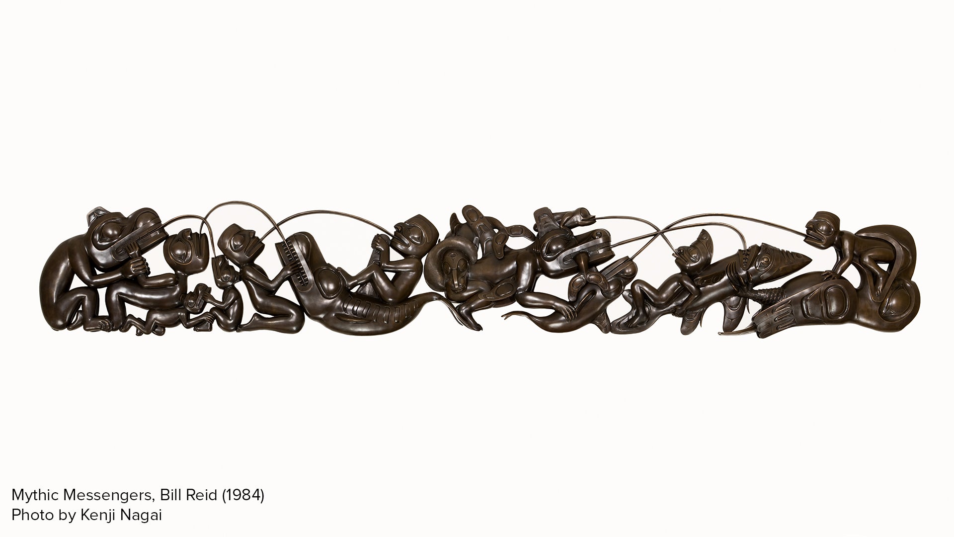 At the heart of our Gallery is a remarkable permanent collection that presents the magnificent works of Bill Reid, including monumental works such as Mythic Messengers, white onyx Raven and the First Men, masks and other carvings, works on paper, wire sculptures, and the Raven’s Trove Gallery that showcases Reid’s exquisite jewelry.